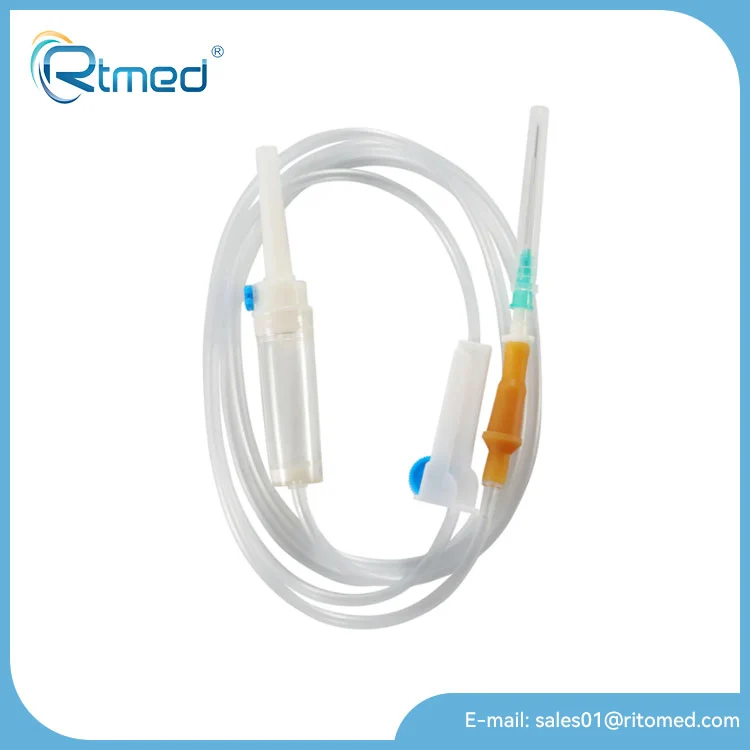 Ten jednorazowy zestaw infuzyjny RTMED to sterylne urządzenie medyczne, zwykle składające się z igły lub cewnika, rurki i zacisku, używane do podawania płynów i leków bezpośrednio do krwioobiegu pacjenta przez dostęp dożylny (IV) i jest przeznaczone do stosowania tylko raz, a następnie wyrzucić po użyciu; zasadniczo jednorazowa linia dożylna używana do podawania pacjentowi płynów lub leków.